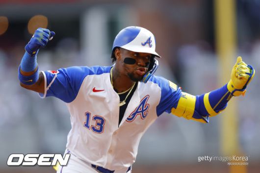 [OSEN=한용섭 기자] 메이저리그 애틀랜타 브레이브스의 로날드 아쿠나 주니어가 초대형 홈런 괴력을 발휘했다.