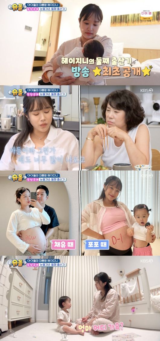 30일 방송된 KBS 예능 ‘슈퍼맨이 돌아왔다’(이하 ‘슈돌’)에서는 ‘태어나줘서 고마워’ 편으로 진행된 가운데 키즈 콘텐츠 크리에이터 헤이지니의 둘째 포포 출산기가 그려졌다.