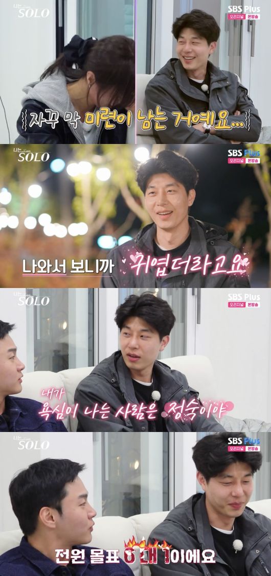 그러자 영수는 “저는 정반대였다. 저는 좀 피했다. 사실”이라며 “첫인상 선택 때 정숙 님 했다. 저는 첫인상 잘 안 바뀌는 사람이다. 얼핏얼핏 봤을 때 호감이 가는 포인트 많았다”리며 “정숙님 포항 산다고 했는데 그건 안 되는데. 원래 이렇게 얘기 안 했으면 내일까지만 잘 참으면 되지 않냐. 없는 사람인 것처럼”라고 밝혔다.