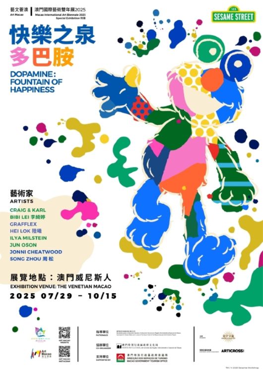 로마 신화와 도파민 아트가 만난 이 전시는 베네시안 마카오의 유럽풍 건축물과 어우러져 마카오를 위해 특별히 만든 작품들을 세계 최초로 공개한다. 샌즈 차이나는 작가들에게 세서미 스트리트의 가치를 감각적으로 표현하도록 했고 ‘예술 + 도시’ 콘셉트로 강렬한 색감과 상상력이 넘치는 작품들을 선보인다.