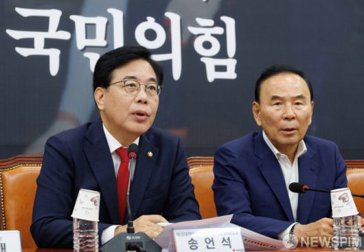 [서울=뉴스핌] 윤창빈 기자 = 송언석 국민의힘 비상대책위원장 겸 원내대표가 31일 오전 서울 여의도 국회에서 열린 비상대책위원회의에서 모두발언을 하고 있다. 2025.07.31 pangbin@newspim.com