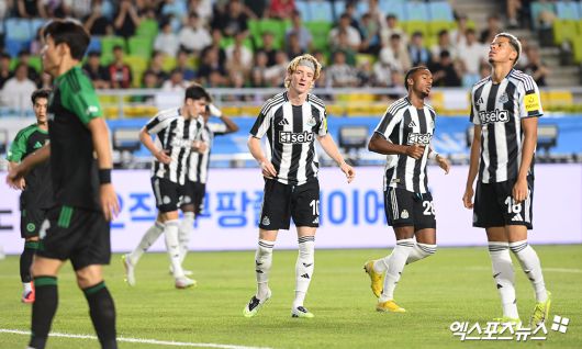 팀 K리그는 30일 수원월드컵경기장에서 열린 뉴캐슬 유나이티드와의 2025 쿠팡플레이 시리즈 첫 번째 경기에서 1-0 승리를 거뒀다.