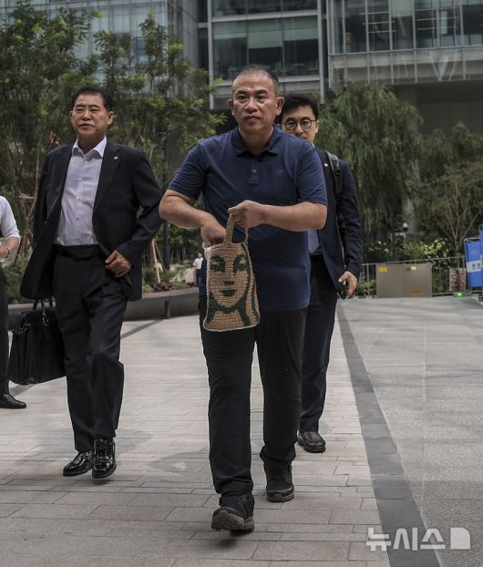 [서울=뉴시스] 정병혁 기자 = 공천개입 의혹 및 여론조사 조작 의혹을 받고 있는 명태균 씨가 31일 서울 종로구 김건희 특검팀(특별검사 민중기) 사무실로 조사를 받기 위해 출석하고 있다. 2025.07.31. jhope@newsis.com