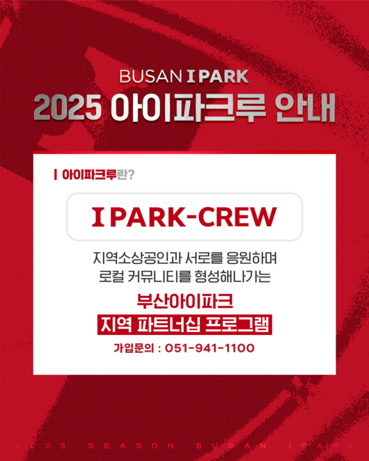 아이파크루는 부산을 기반으로 활동하는 소상공인과 함께 홈경기장 안팎에서 브랜드 노출과 공동 마케팅을 전개하는 지역밀착형 멤버십이다. 구단은 “단순 협찬을 넘어, 지역 파트너와 ‘같이 뛰는 팀’으로 성장하겠다”는 비전을 담아 CREW와 CAPTAIN 두 가지 등급으로 프로그램을 구성했다.