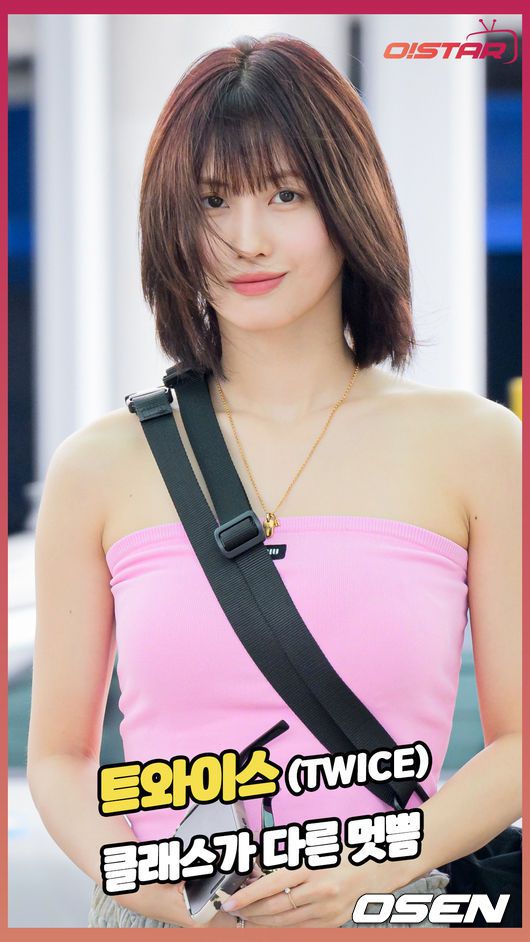 [OSEN=인천공항, 민경훈 기자] 그룹 트와이스(TWICE-나연, 정연, 모모, 사나, 지효, 미나, 다현, 채영, 쯔위)가 31일 오전 인천 중구 인천국제공항을 통해 롤라팔루자 시카고 일정 참석 차 미국 시카고로 출국했다. 트와이스가 출국장으로 향하며 포즈를 취하고 있다. 2025.07.31 /rumi@osen.co.kr