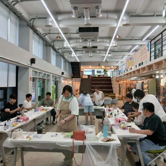 △ “반짝, 내 손안의 여름” : UV 레진으로 스마트폰 그립톡을 제작하는 체험. MZ세대에게 인기 폭발!