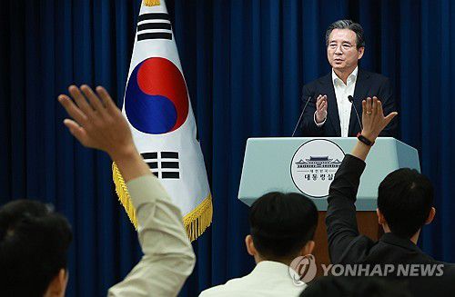 (서울=연합뉴스) 황윤기 기자 = 김용범 대통령실 정책실장은 31일 한미 간 관세협상 타결과 관련, "미국이 한국에 8월 1일부터 부과하기로 예고한 상호관세 25%는 15%로 낮아진다. 주력 수출 품목인 자동차 관세도 15%로 낮췄다"고 말했다.