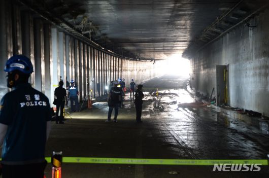 [청주=뉴시스] 조성현 기자 = 20일 오전 경찰과 국립과학수사연구원 등 유관기관 관계자들이 24명의 사상자가 발생한 충북 청주시 흥덕구 오송읍 궁평2지하차도에서 합동 감식을 하고 있다. 2023.07.20. jsh0128@newsis.com |
