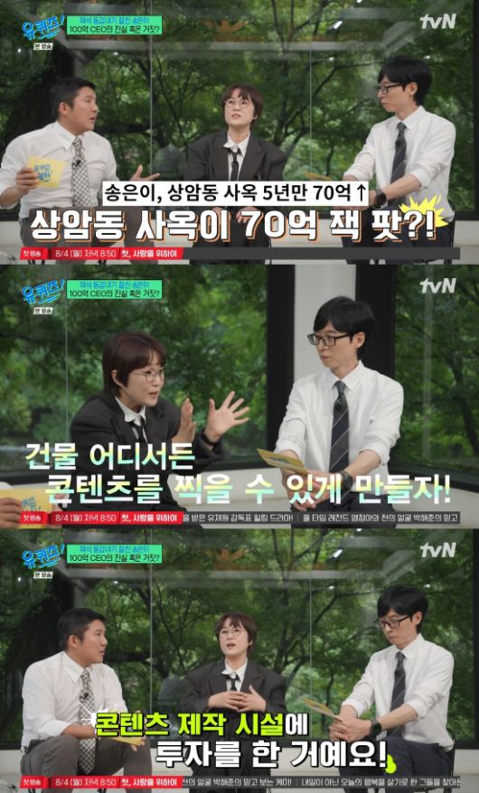 '상암동 건물'로 70억 잿팟을 터뜨린 것과 관련해선 "부동산 투자라기보단 콘텐츠 회사니까 마음 놓고 콘텐츠를 찍을 수 있는 공간이 있었으면 좋겠다는 마음에, 건물 전체 어디서나 콘텐츠를 찍을 수 있게 만들고 싶었다. 시설을 위해 투자했다고 보는 게 맞는 것 같다"고 설명했다.