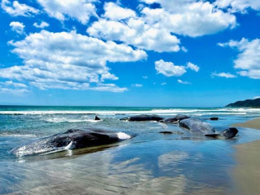 29일 일본 지바현 다테야마시 평사우리 해변 오후 6시 30분께 고래들이 떠밀려왔다. 주민 신고로 출동한 경찰은 몸길이 7~8m가량으로 추정되는 살아 있는 향유고래 4마리를 발견했다.