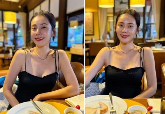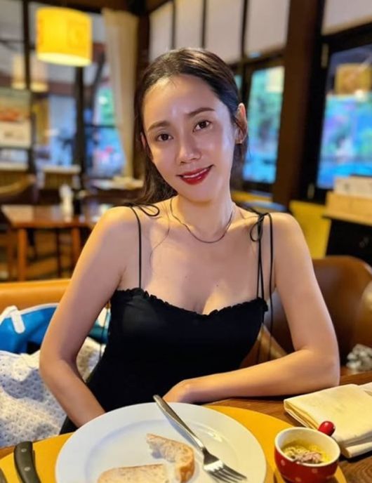 사진 속 그는 검정 슬립 원피스를 입고 환한 미소를 지은 채 카메라를 응시하고 있으며, 잡티 하나 없는 맑은 피부와 단정한 헤어스타일로 단아한 매력을 한껏 뽐냈다.