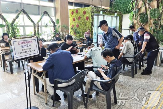 빛고을노인건강타운이 타운을 이용하는 60세 이상 노인을 대상으로 '민생 회복 소비쿠폰 활용과 인식' 설문조사를 진행하고 있다.(빛고을노인건강타운 제공. 재판매 및 DB 금지) |