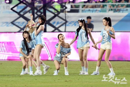 장원영은 핫팬츠를 같이 입긴 했지만 몸에 붙는 미니 원피스를 입은 탓에 시축을 할 때도 다른 멤버들에 비해 움직임에 제약이 있었다.