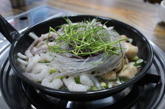 '원○○○○○'에서 빼놓을 수 없는 메뉴가 낙곱새다. 낙지, 곱창, 새우에 각종 야채와 당면까지 푸짐하게 담겨져 나오는 낙곱새는 국물이 졸아들 정도로 끓이다보면 먹음직스럽게 완성된다. 낙지, 곱창, 새우, 당면까지 골라먹을 수도 있고 밥에 낙곱새를 올려 콩나물, 김가루와 함께 비벼 먹어도 그 맛이 일품이다.