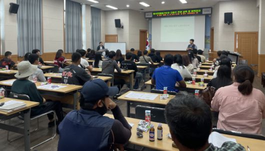 전남도에 거주하는 외국인 근로자와 근로자 고용주 관계자가 함께 인권교육을 받고 있다./전남도