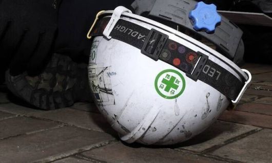 안전모가 상처 입은 모습으로 바닥에 떨어져 있다. 김혜윤 기자 unique@hani.co.kr |