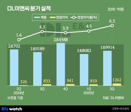 DL이앤씨가 올해 2분기 약 3년 만에 1000억원대 분기 영업이익을 기록했다. 전년 동기 대비 매출이 소폭 줄었음에도 선별 수주와 함께 매출 비중이 높은 주택부문 원가율을 개선하면서 이익률이 높아진 영향으로 풀이된다.