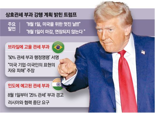 도널드 트럼프 미국 대통령이 전 세계를 상대로 공지한 ‘8월 1일(현지시간)’ 상호관세 발효일을 반드시 지키겠다는 의지를 드러냈다.
