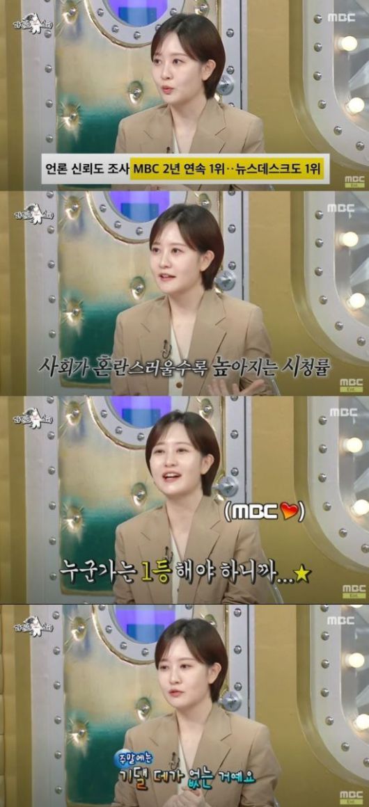 이에 MC 김구라가 “그래도 타 방송사보다 MBC가 잘 나오는 게 낫지 않냐”고 묻자, 김수지는 쿨하게 “맞다”며 웃음을 터뜨렸다.