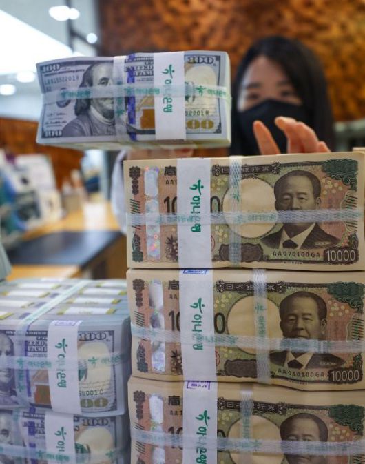 18일 오전 서울 중구 하나은행 위변조대응센터에서 직원이 엔화와 달러화를 정리하는 모습. 연합뉴스 |
