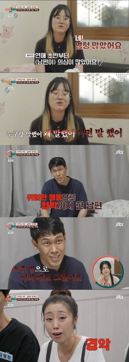 남편의 의심은 연애 초반부터 두드러졌다고 밝힌 아내. 편의점에서 일할 당시에도 남편은 "누구와 왜 말했느냐"며 행패를 부린 적도 있었다고 밝혀 주변을 놀라게 했다.