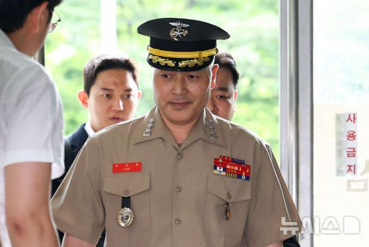 [서울=뉴시스] 최진석 기자 = 박정훈 해병대수사단장(대령)이 31일 서울 서초구 이명현 순직 해병 특별검사 사무실로 참고인 조사를 받기 위해 2차 출석하고 있다. 2025.07.31. myjs@newsis.com