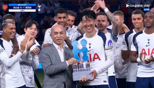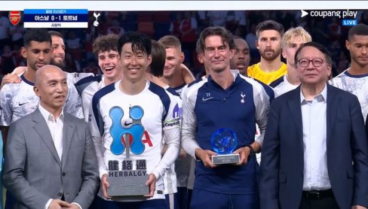 경기 후 시상식이 열렸다. 여러 토트넘 선수들과 토마스 프랭크 감독은 단상 위로 올라왔다. 이후 프랭크 감독과 '주장' 손흥민이 앞으로 나와 기념 사진을 찍었다. 대망의 하이라이트는 트로피 세레머니였다. 지난 유럽축구연맹(UEFA) 유로파리그(UEL) 우승 세레머니와 비슷하게 손흥민은 멋지게 트로피를 들어 올렸다. 옆에 있던 크리스티안 로메로, 페드로 포로, 제임스 매디슨을 비롯해 동료 선수들은 박수를 보냈다. 이에 손흥민은 쑥스러워 어쩔 줄 몰라하는 반응이었다.