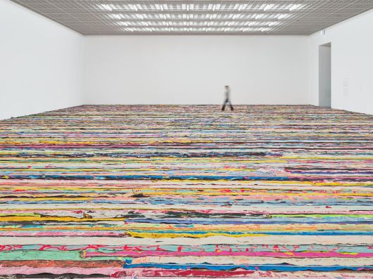 이번 ‘마크 브래드퍼드: 킵 워킹(Keep Walking)’전은 회화, 영상, 설치 등 40여 점을 선보인다. 화려한 색 띠가 바닥에 깔린 설치 작품 ‘떠오르다(Float)’와 미용실 파마지로 만든 회화 연작, 길거리 전단지를 모아 만든 ‘명백한 운명’ 등을 볼 수 있다.