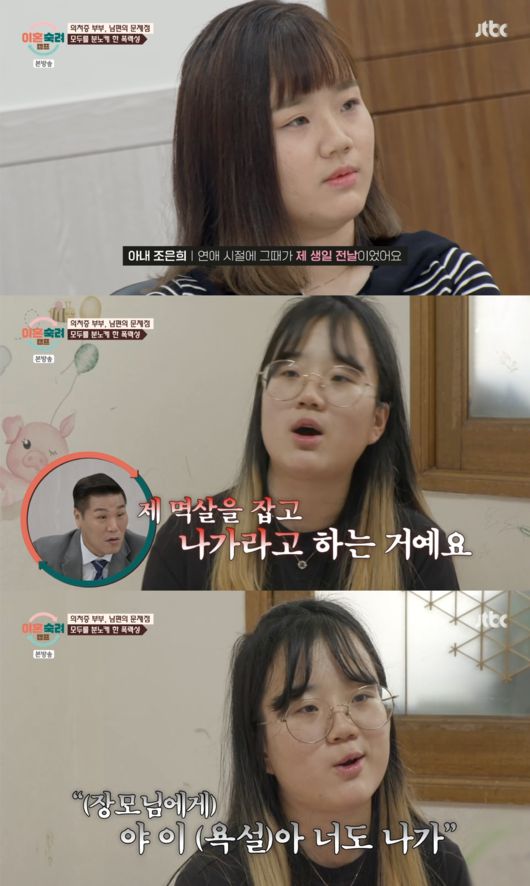 문제는 연애시절 아내의 생일 전날 일어났다고. 남편은 갑자기 아내의 멱살을 잡으며 "나가라"고 소리쳤다. 더욱 충격적인 것은, 이 과정에서 아내의 어머니에게까지 "야 이 XXX아 너도 나가"라고 차마 입에 담을 수 없는 욕설을 했다는 것.