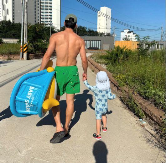아이의 폭풍 성장도 눈길을 끌었다. 푸른 계열의 래시가드를 입고 아빠와 함께 걷는 뒷모습은 어느새 자라난 가족의 중심을 보여주는 듯했다.
