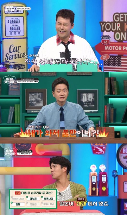 직후 ‘KBS 아나운서 직속 선배’인 신영일이 국어 마스터로 등장하자 전현무는 눈을 질끈 감았다. 신영일은 “전현무 씨! 그 리액션은 뭐냐?”고 초장부터 기강을 잡아, ‘KBS 직속 선후배’의 티키타카를 예감케 했다.
