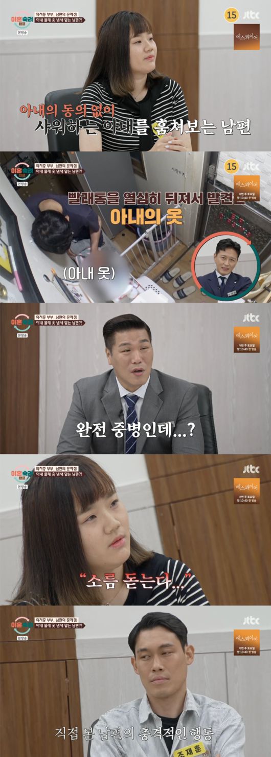 [OSEN=박근희 기자] '이혼숙려캠프’ 남편이 아내가 샤워하는 동안 몰래 속옷 냄새를 맡는 모습이 그려졌다.