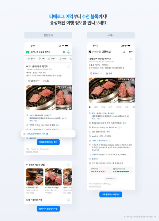 이 같은 일본 음식점 플레이스는 네이버 여행정보 서비스는 물론 일본 여행 관련 키워드 통합 검색 결과 전반에도 함께 노출된다.