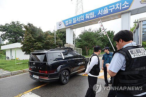 서울구치소 (의왕=연합뉴스) 서명곤 기자 = '12·3 비상계엄' 관련 내란·외환 의혹을 수사하는 조은석 특별검사팀이 윤석열 전 대통령에 대한 강제 구인 실패와 관련해 경위 파악에 나섰다. 출석 요구에 불응하면서 실체 규명을 위한 형사사법 절차 진행에 협조하지 않는 윤 전 대통령의 대응 방식도 강하게 비판했다. 사진은 15일 경기도 의왕시 서울구치소 앞에서 법무부 차량이 구치소로 향하는 모습. 2025.7.15 seephoto@yna.co.kr