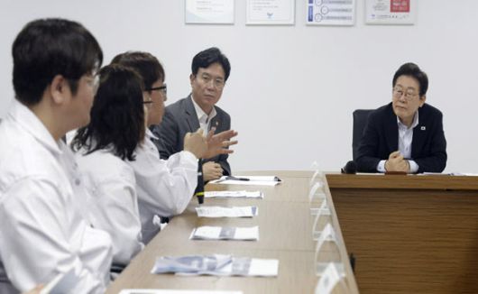 이재명 대통령이 경기 시흥시 SPC 삼립 시화공장에서 열린 산업재해 근절 현장 노사간담회에서 SPC 삼립 직원의 발언을 듣고 있다. 이 대통령 왼쪽은 김영훈 고용노동부 장관 (사진제공=대통령실) |
