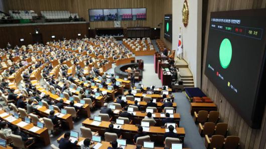 인공지능발전과 기반조성 등 기본법안(대안), 본회의 통과 지난해 12월 26일 국회 본회의에서 인공지능발전과 신뢰 기반 조성 등에 관한 기본법안(대안)이 통과되고 있다.[사진=연합뉴스] |