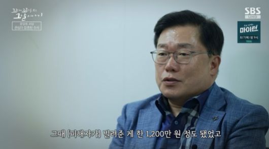 "관련된 어떤 사업에 돈을 빌려주면서 이제 알게 돼서 그때 빌려준 게 한 1,200만원 정도 됐었고, 이제 그거 받으러 갔다가 실종이 됐었으니까요."