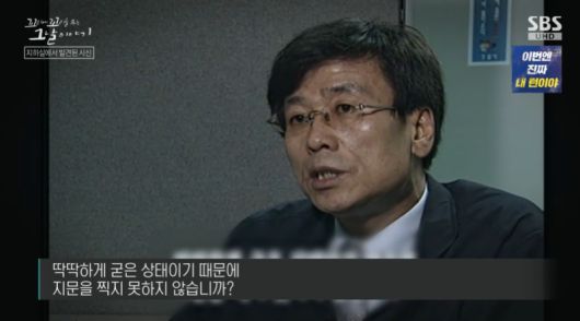 "제가 다른 지문은 다 유형별로 다 봤지만은 미라 형태로 된 거는 처음이에요. 딱딱하게 굳은 상태기 때문에 지문을 찍지 못하지 않습니까?"