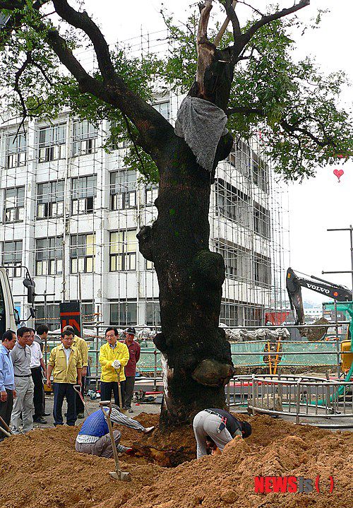 그러나 2012년 태풍 볼라벤 피해로 쓰러졌고 다시 심었으나 결국 고사했다. 안타까운 소식에 한 시민이 고사하기 5년 전 회화나무 밑에서 자란 묘목을 가져다 키우던 것을 후계목으로 기증했다.