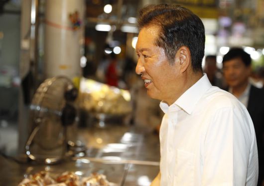 더불어민주당 당대표 후보인 정청래 국회의원이 30일 오후 인천 계양구 계양산전통시장에서 상인들과 만나 인사를 나누고 있다. 2025.07.30 뉴시스 |