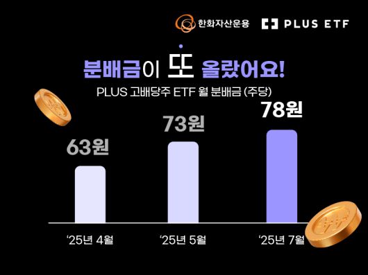 한화자산운용은 ‘PLUS 고배당주 상장지수펀드(ETF)’ 주당 월 분배금을 78원으로 인상했다고 1일 밝혔다.