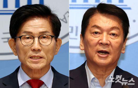 국민의힘 김문수 당대표 후보(왼쪽)와 안철수 후보. 윤창원 기자 |