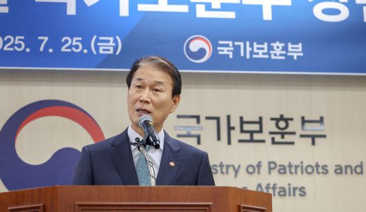 권오을 신임 국가보훈부 장관이 지난달 25일 정부세종청사에서 열린 취임식에서 취임사를 하고 있다. 국가보훈부 제공. |