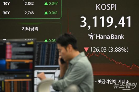 정부의 세제개편 여파로 코스피 지수가 전일 대비 126.03포인트(-3.88%) 급락된 3119.41에 장을 마친 1일 오후 서울 중구 하나은행 딜링룸에서 직원들이 업무를 보고 있다. 이는 도널드 트럼프 미국 대통령이 상호관세를 발표한 직후인 지난 4월 7일(-5.57%) 이후 4개월 만에 가장 큰 낙폭으로, 코스닥도 전날 대비 32.45포인트(-4.03%) 내린 772.79에 거래를 끝내며 800선을 기록했다. 원달러 환율은 1,403.70을 기록하고 있다. 사진=강민석 기자 kms@newsway.co.kr |