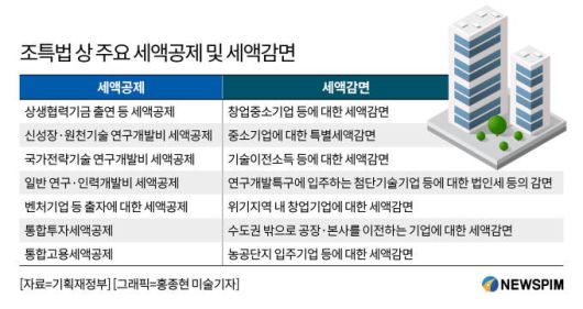 창업중소기업 등에 대한 세액감면, 중소기업에 대한 특별세액감면, 기술이전소득 등에 대한 세액감면, 연구개발특구에 입주하는 첨단기술기업 등에 대한 법인세 등 감면, 위기지역 내 창업 기업에 대한 세액감면 등 다양한 세액감면 제도도 시행한다.
