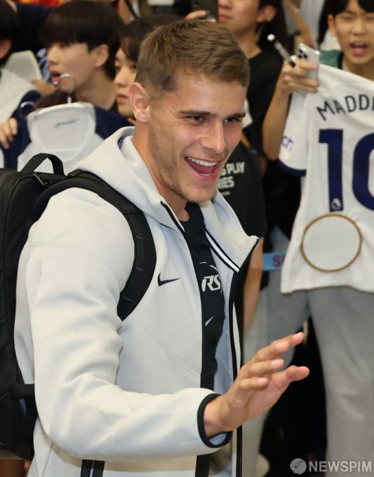 [영종도=뉴스핌] 정일구 기자 = 잉글랜드 프리미어리그(EPL) 토트넘 홋스퍼 미키 판 더 펜이 1일 오후 2025 쿠팡플레이 시리즈 참가를 위해 인천국제공항 제1여객터미널을 통해 입국하고 있다. 토트넘은 오는 3일 서울월드컵경기장에서 뉴캐슬 유나이티드를 상대로 2025 쿠팡플레이 시리즈 2경기를 치른다. 2025.08.01 mironj19@newspim.com