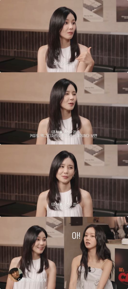 혜리는 "저는 조식도 좋아한다. 1시간씩 먹는다"고 말했다. 이에 이보영은 "1시간밖에 안 먹어?"라며 "커피도 마시고 디저트도 먹으려면 2시간은 걸린다"며 "남편(지성) 데리고 나가겠다. 나랑 한 번 조식 먹자"고 제안했다.