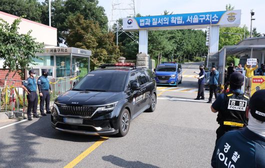 김건희 여사의 각종 의혹을 수사하는 김건희 특검팀(특별검사 민중기)이 윤석열 전 대통령에 대한 체포영장 집행에 나선 1일 오전 경기도 의왕 서울구치소에서 호송차가 나오고 있다. 2025.8.1/뉴스1 |