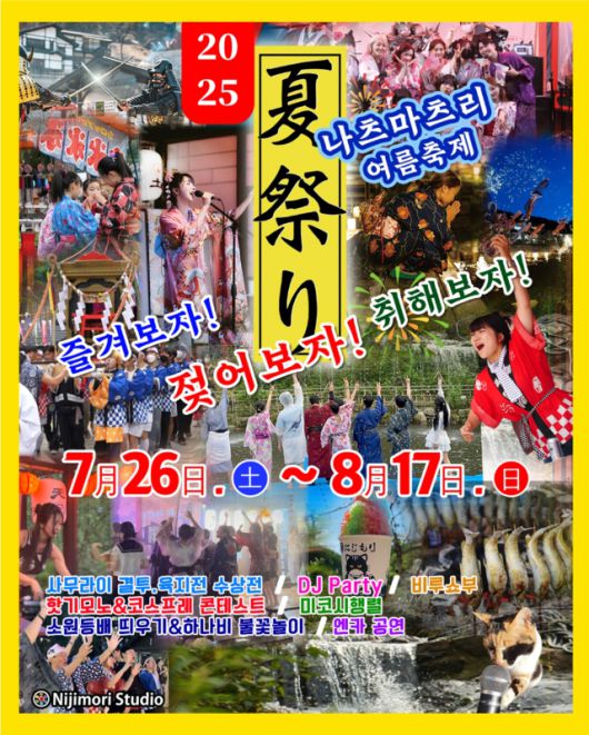 문제의 축제는 경기도 동두천에서 이달 26일부터 다음 달 17일까지 열리는 ‘니지모리스튜디오 나츠마츠리 여름축제’다. 일본 정통 여름축제를 현대적으로 재해석한 체험형 행사로, 니지모리 측은 이를 대표 여름 프로그램으로 소개하고 있다.
