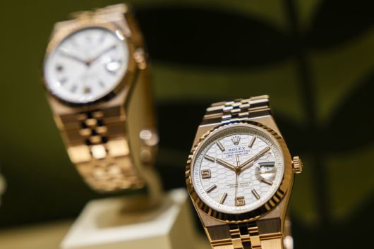 지난 4월2일(현지시간) 스위스 제네바에서 열린 명품 시계 박람회에 전시된 롤렉스의 신제품 랜드-드웰러.EPA연합뉴스